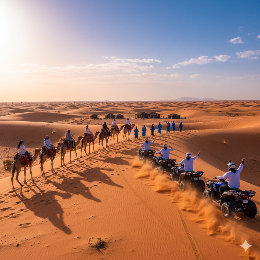 Arrive in Merzouga in the afternoon; prepare light luggage for the desert night.